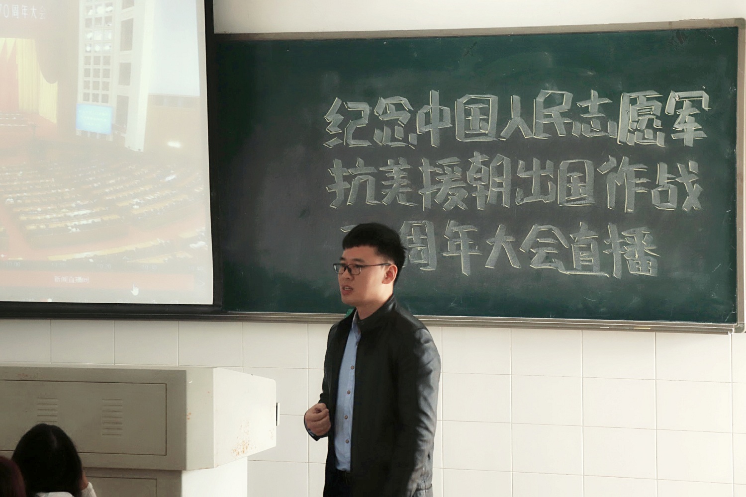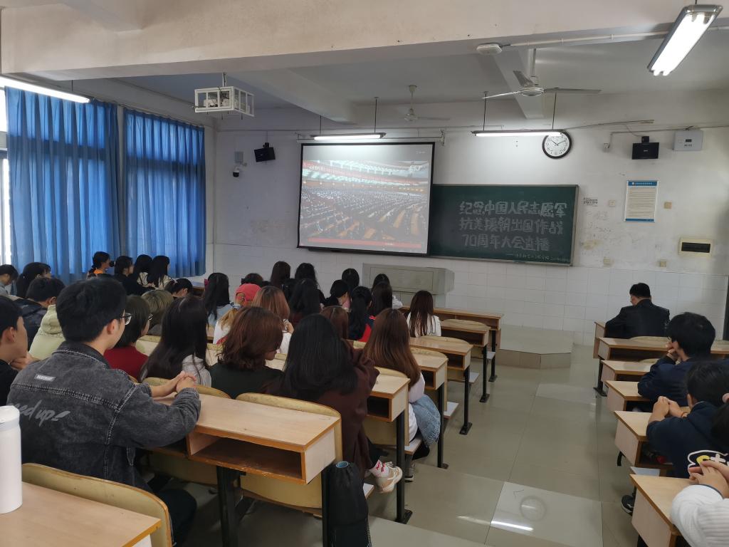 10月23日上午10点,伟德官网组织师生代表收看纪念中国人民志愿军抗美援朝出国作战70周年大会,聆听习近平总书记的重要讲话,缅怀为保家卫国牺牲的革命先烈,弘扬爱国主义与国际正义。