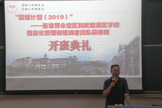 2019年8月2日讯(通讯员 周克江):8月2日,由伟德官网承办的“国培计划(2019)”——张家界永定区和武陵源区学校信息化管理团队研修项目(C114),在湖南第一师范院鹤鸣楼南111教室隆重开班。继续教育学院院长曾小玲、本院总支书记王杰文、副院长田祖伟、副院长何向阳,永定区和武陵源区相关领导,培训班管理团队全体成员及60名学员参加了开班仪式。