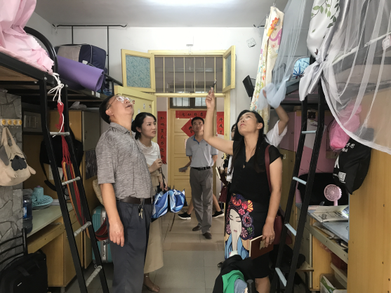 在新生寝室中,领导、老师们与学生亲切交谈,仔细查看了寝室的各项设备,就宿舍维修、是否存在漏水隐患等问题进行了详细登记,并认真询问了大家对学校学生管理、生活服务等方面的建议,确保学生能有一个舒适健康的住宿和学习环境。同时,也反复叮嘱同学们要加强安全意识,注意个人生命财产安全,谨防上当受骗。要尽快适应新环境,与同寝室同学和睦相处,一起努力、相互学习,提高整个寝室的学习成绩和氛围,发奋学习,不断进步。