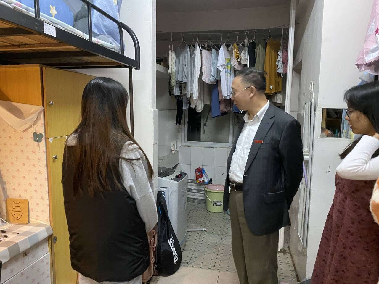 每到一间宿舍,大家认真检查宿舍基础设施、安全用电情况以及内务卫生情况,并与同学们亲切交谈,就学院教育教学、学生管理、生活服务、学风建设等方面广泛收集同学们的意见和建议。