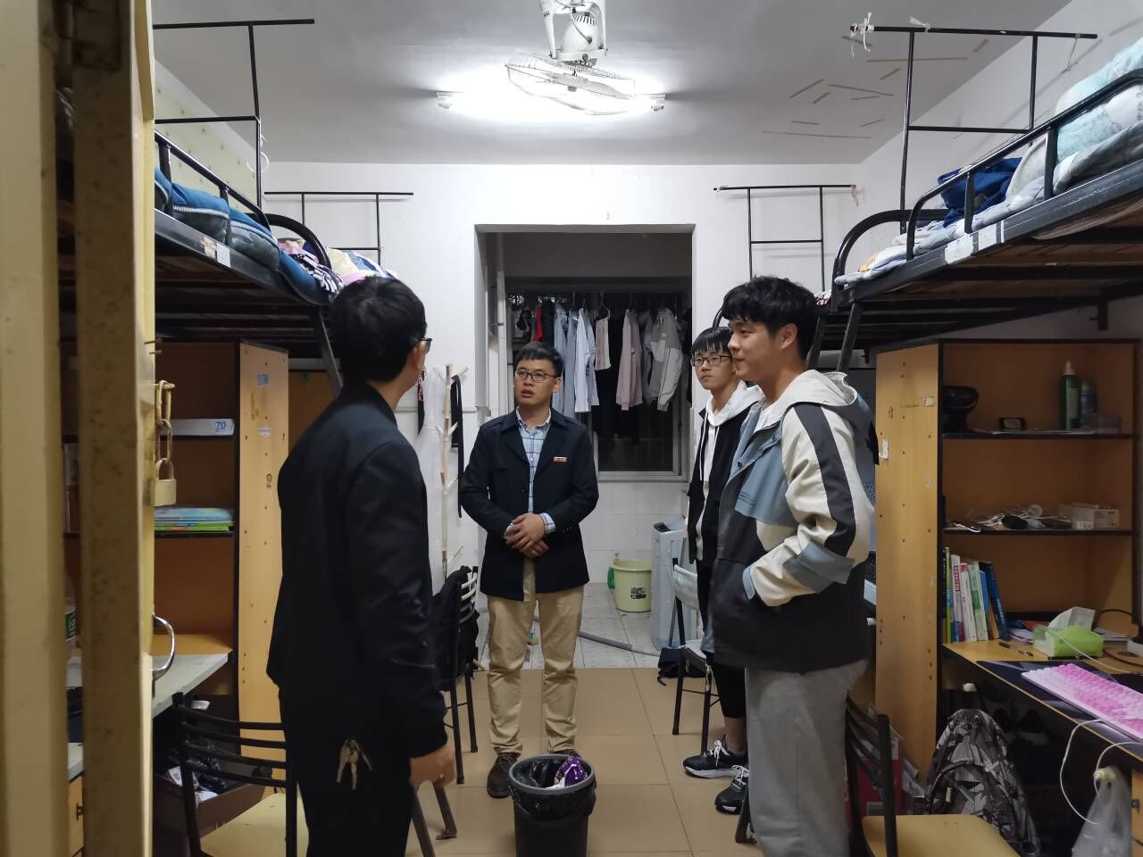 2020年10月27日下午六点整,伟德官网党总支书记王杰文教授、副院长田祖伟教授、何向阳教授、党总支副书记成夏炎博士带领辅导员和学生干部到4栋、11栋、12栋、13栋、14栋学生宿舍看望学生,检查寝室学风、文明卫生、内务整理,进行安全隐患排查;详细了解学生近期思想、学习和生活情况,从寝室环境、学习氛围、文明礼仪等方面进行宣传和教育引导。