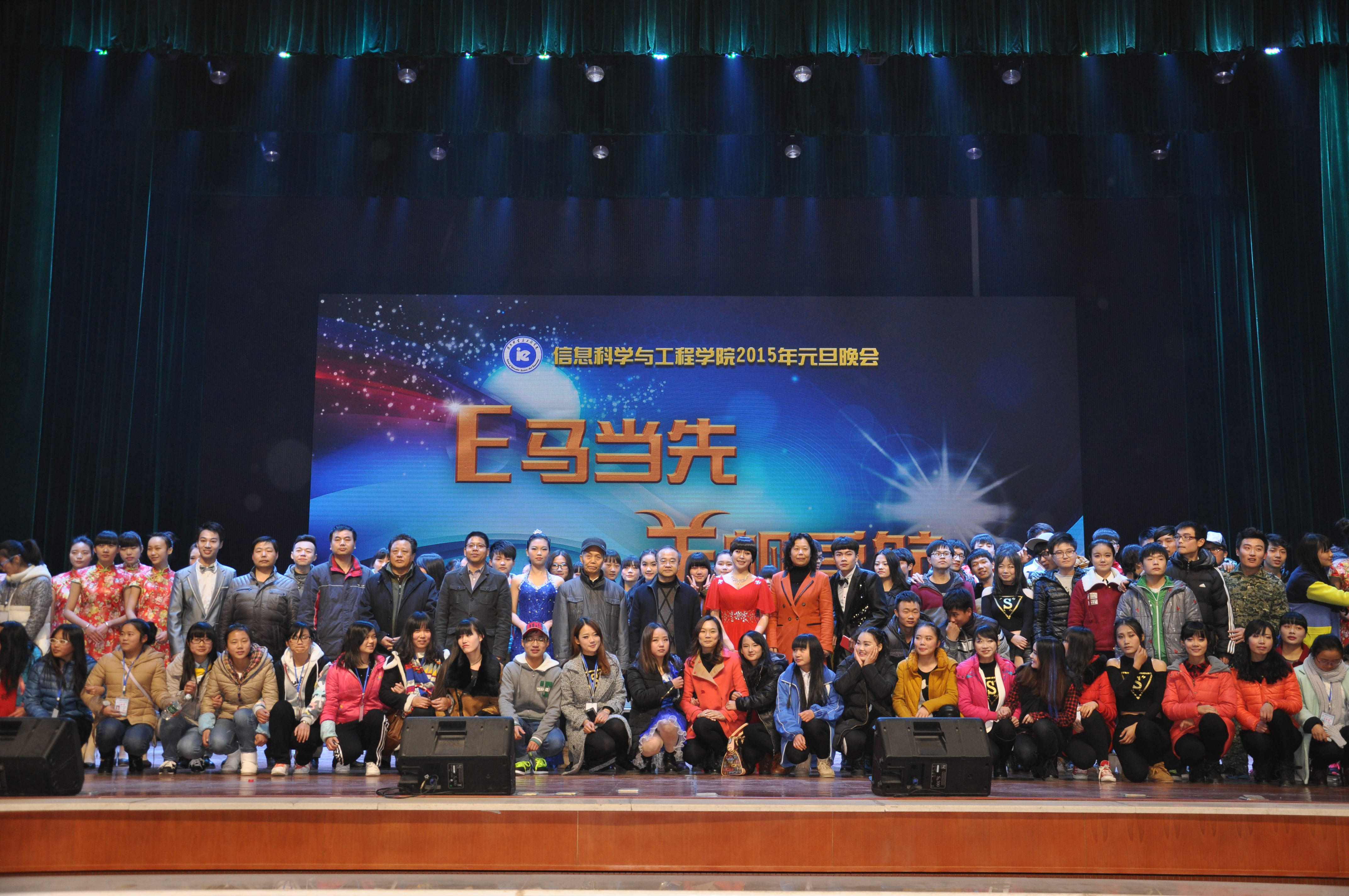 (通讯员 易利) 万象更新辞旧岁,欢歌笑语迎羊年。12月22日晚7点,信息科学与工程学院“E路花开,羊帆起航”2015年元旦晚会在东方红校区音乐剧场拉开帷幕。校党委书记彭小奇、校长助理、党政办主任江正云、校长助理、信息科学与工程学院院长李勇帆、校保卫处处长陈月林、学生工作处处长何文、现代教育技术中心主任朱承学、校团委副书记赵小群以及学院领导老师共计40余人应邀莅临晚会现场,与1000余名同学共同观看了本次晚会。