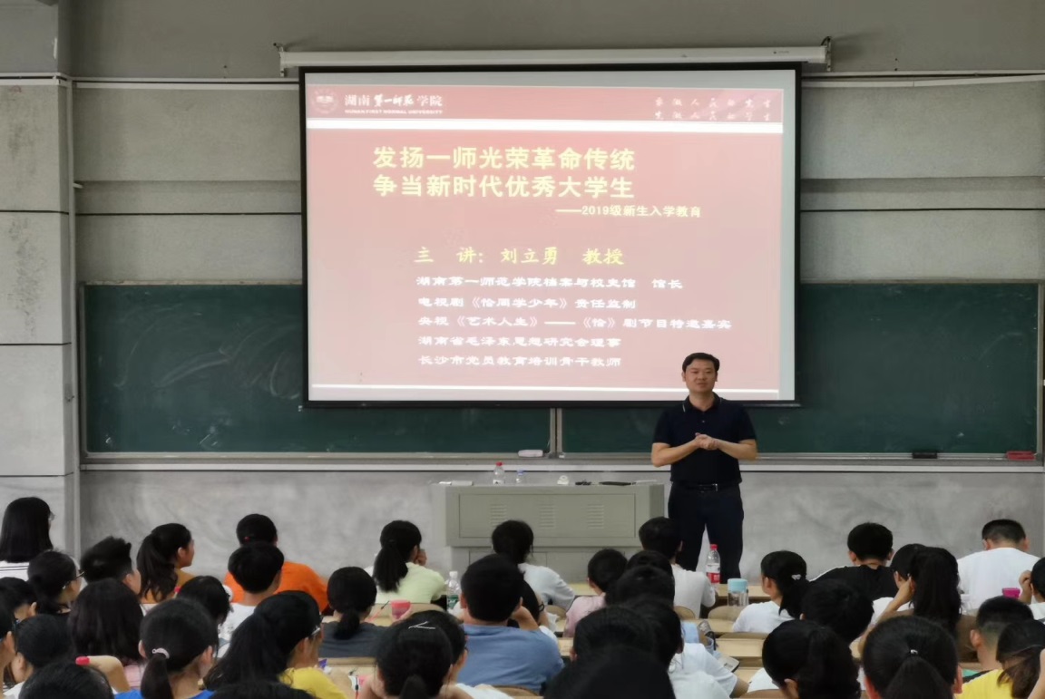 刘立勇教授为初来乍到的新生讲解了伟德官网的发展历史以及伟大校友毛泽东在一师求学的故事,他教导新生要发扬一师光荣革命传统,争当新时代优秀大学生。