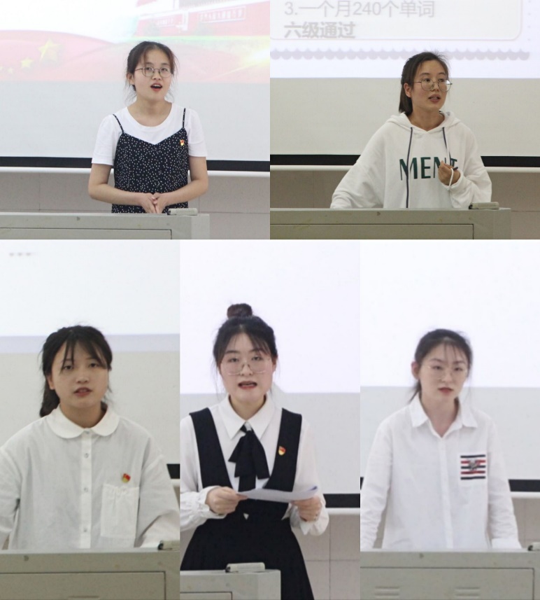 接着,17通信1班王思洁、17计科1班秦玉丽、18通信1班杨婕妤、18教技2班徐杉杉、18级787教技班王敏先后介绍了国家和学校的资助体系和政策,分享了她们成长成才道路上的体会与感悟、经验与启示,同时表达了对党和国家、学校、老师的感恩之情,并表示将加倍努力,以实际行动反哺社会、报效祖国。