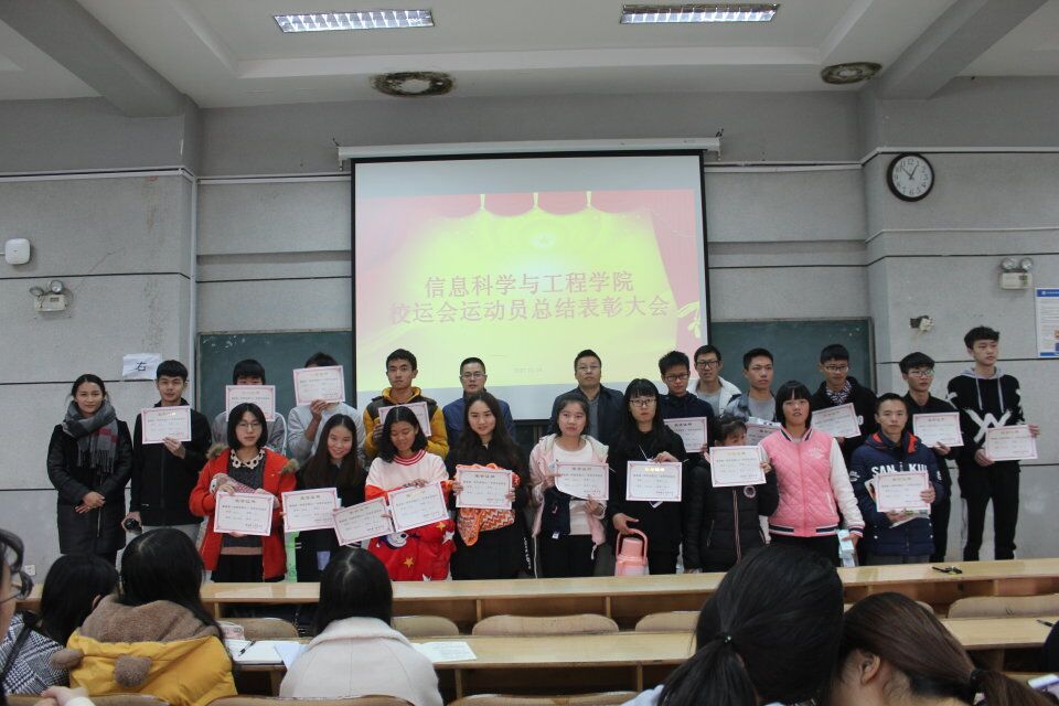 至此,信息科学与工程学院运动员表彰大会圆满结束,运动会虽然过去了,但运动会传递的团结友爱协作的精神依然在传递,生生不息。相信经过全院学生的共同努力,定会创造学院更灿烂的未来。
