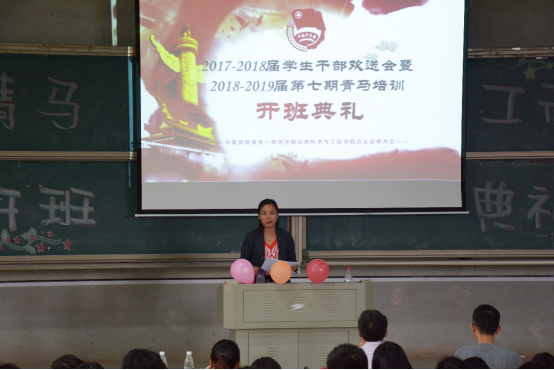 之后,党总支副书记易利介绍了青马的课程设置并宣读青马学员培养守则。她强调青马课程对团学会干部和优秀青年的培养意义重大,对提高学员综合素质与应用能力有极大的推动作用,希望学员能够积极发扬“实事求是,不自以为是”的优良校风,在全院同学中真正发挥先锋模范作用,共同促进学院的发展和良好学风的建设。