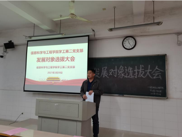 2021年3月30日,伟德官网学工第一、第二党支部在玉衡北209、210召开发展对象选拔大会。学工第一党支部书记关红儒、学工第二党支部书记李荣敬,全体学生党员和69名入党积极分子参与此次大会。大会分别由戴玉洁、刘妍主持。