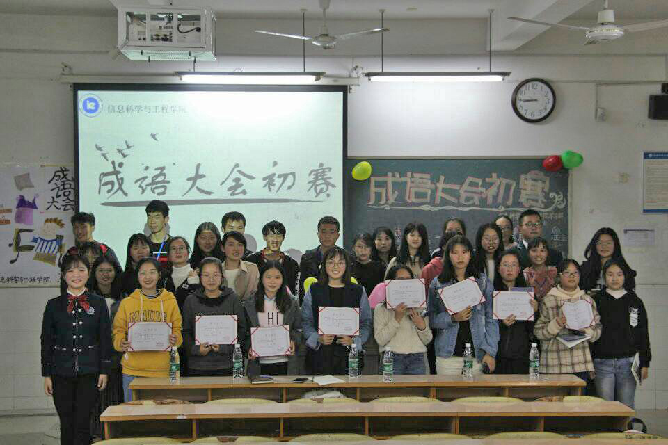 为丰富学生的课余文化生活,提升学生对成语文化的认知,领略中华文化的博大精深,2018年10月22日晚7点,信息科学与工程学院于玉衡北410成功举办了成语大赛初赛。BV伟德官方网站校学风建设部副部长罗彩玲应邀出席比赛,信息科学与工程学院部分学生观看了比赛。在工作人员的辛勤筹备、比赛选手的争分夺秒、观众的声声喝彩中,成语大赛初赛顺利落下帷幕。