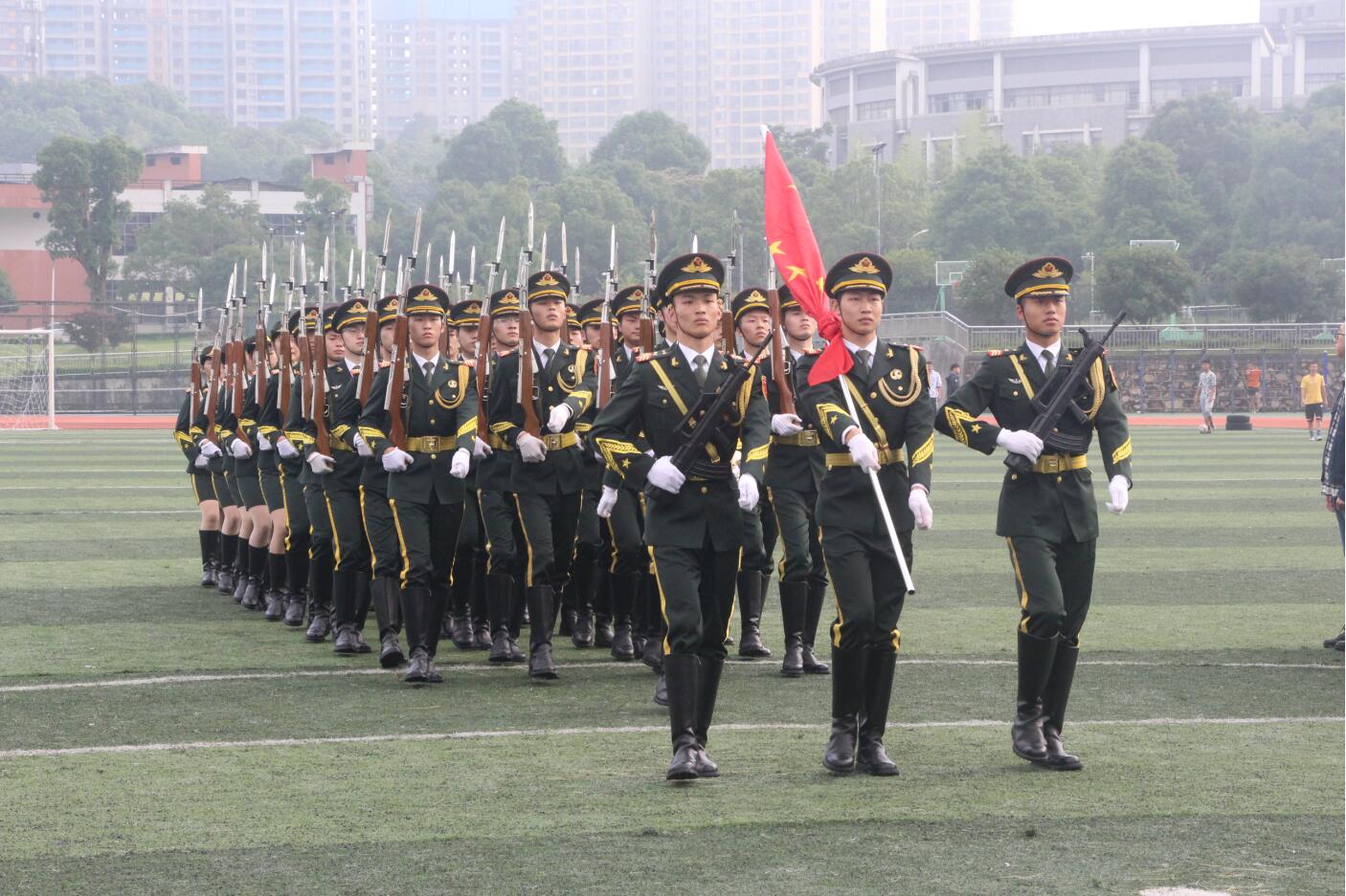 5月31日的早晨,温暖朝霞照耀,清甜鼻边弥漫,舒适宜爽、沁人心田。7时整,国旗护卫队步伐威严铿锵、整齐划一,在全体师生的注目礼下,伴随着嘹亮的国歌声,徐徐升起鲜艳的五星红旗,迎风飘扬。这是伟德官网在东方红校区田径场隆重举行升国旗仪式。