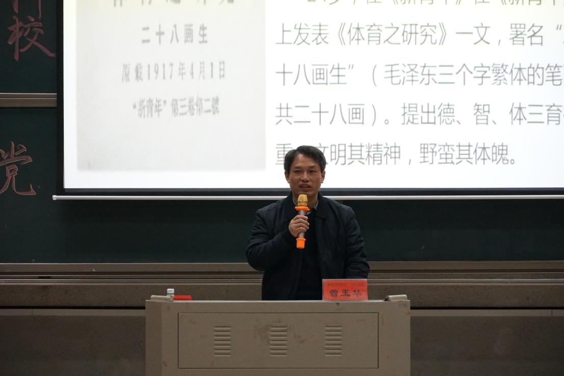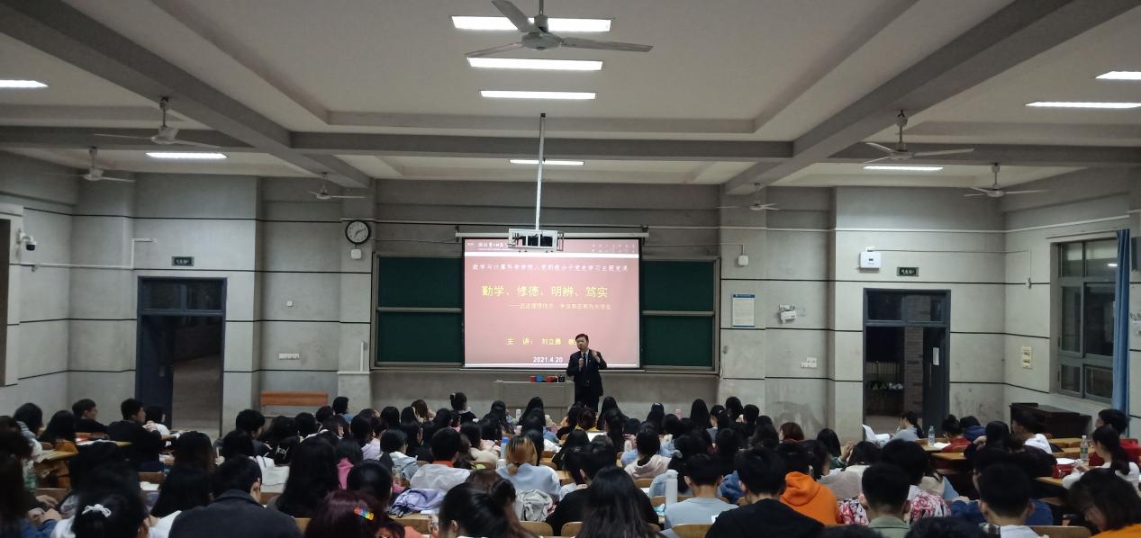 4月15日,数学与计算科学学院党总支书记曾玉华于润寰南105讲授“峥嵘岁月,壮志凌云”的主题党课。他从六个方面激励积极分子们砥砺前行:一是思想启蒙,萌发初心;二是组建团体,探求本源;三是投身实践,传播真理;四是开天辟地,建团建党;五是砥砺奋进,改造社会;六是学史明理,增信前行。他教导学员要学会深入思考,坚持探索真理,敢于修正错误,不断增强本领,在提升自我的同时也为社会发展进步贡献青春力量。