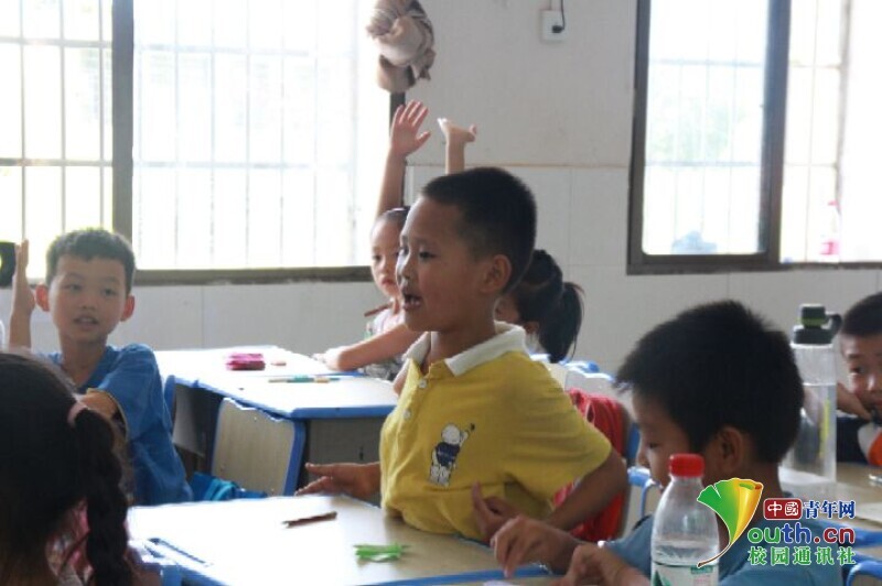 图为在课堂上,小朋友们积极举手回答问题,踊跃参与课堂。中国青年网通讯员 何星逸 摄