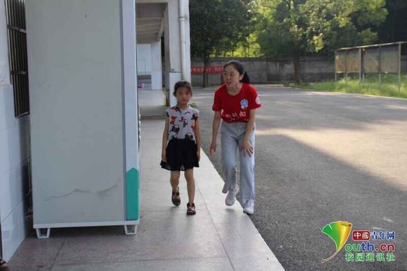 图为朝阳班班主任中午放学帮学生提书包,护送孩子。中国青年网通讯员 欧阳健 摄