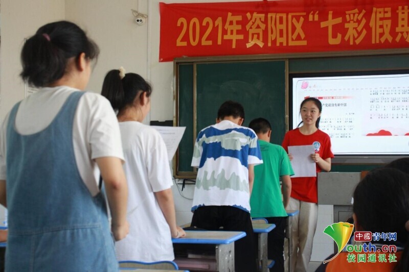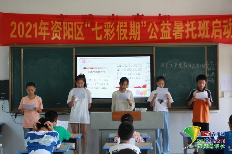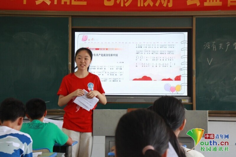 中国青年网益阳7月14日电(通讯员 欧阳健 谢卉倩)7月14日,BV伟德官方网站信息科学与工程学院新航向·梦之队走进益阳市资阳区迎风桥镇长塘仑小学,与当地政府联合举办“七彩假期”公益暑托班活动。为了引导小朋友树立“感党恩,跟党走”的理想信念,培养小朋友们爱党爱国的情怀。开设了以学习红色精神为主题的歌曲《没有共产党就没有新中国》,在课堂上,小朋友们齐声歌唱献礼中国共产党,表达了对党和国家的热爱和敬佩之情。