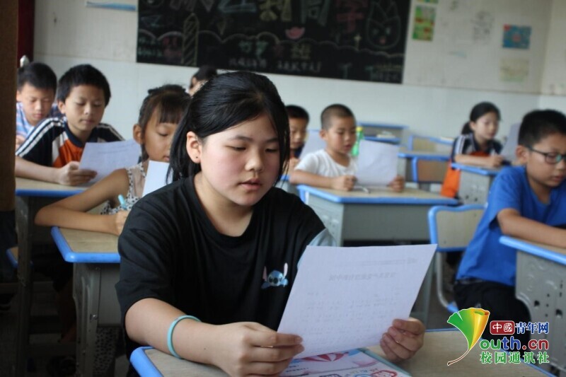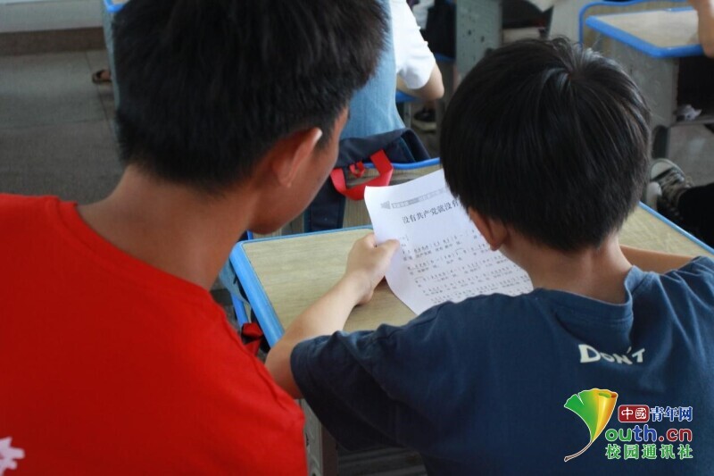 图为害羞腼腆的孩子在老师和同学们的鼓励下,鼓起勇气唱出自己对国家和党的热爱。中国青年网通讯员 欧阳健 摄