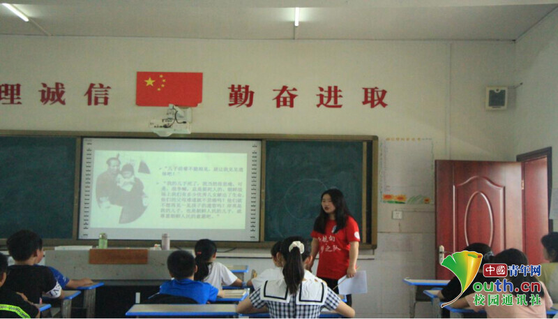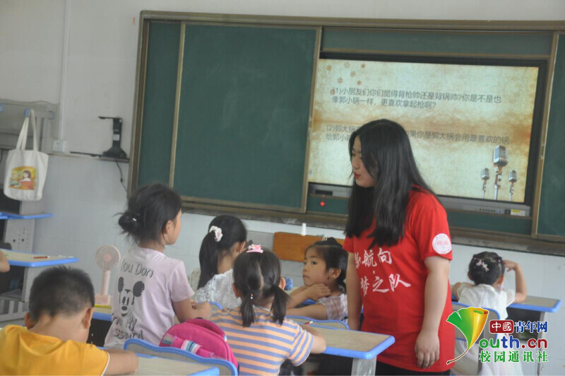 中国青年网益阳7月23日电(通讯员谢卉倩 徐仪婷)2021年7月15日,BV伟德官方网站信息科学与工程学院新航向·梦之队走进益阳市资阳区迎风桥镇长塘仑小学,与当地政府联合举办“七彩假期”公益暑托班活动。为引导学生树立“感党恩,跟党走”的理想信念,培养学生爱党爱国的情怀。开设了以“学习红色故事,传承红色基因”为主题的故事分享会,在课堂上,学生们表达了对党和国家的热爱和敬佩之情。