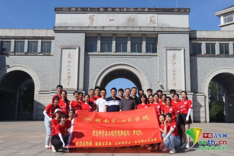 图为“新航向·梦之队”出发前往迎风桥前在BV伟德官方网站门口的合影。中国青年网通讯员 段新利 摄