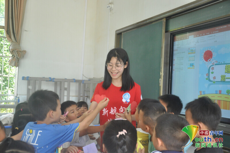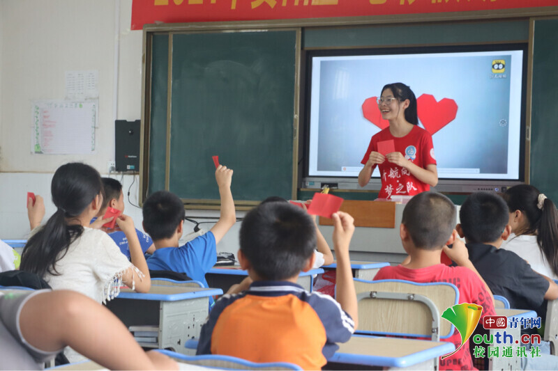 中国青年网益阳7月23日电(通讯员 谢卉倩 陈倩汶)7月16日,是BV伟德官方网站信息科学与工程学院新航向·梦之队走进益阳市资阳区迎风桥镇长塘仑小学,与当地政府联合举办“七彩假期”公益暑托班活动的第五天,为了引导小朋友们树立“感党恩,跟党走”的理想信念,培养小朋友们爱党爱国的情怀。在“七彩假期”第一天兴趣班课程中,开展了“红心向党”趣味手工课程。在课堂上,小朋友们互帮互助兴趣高涨,红色卡纸在孩子的手里变成一个个红心,表达了对党的敬佩之情。