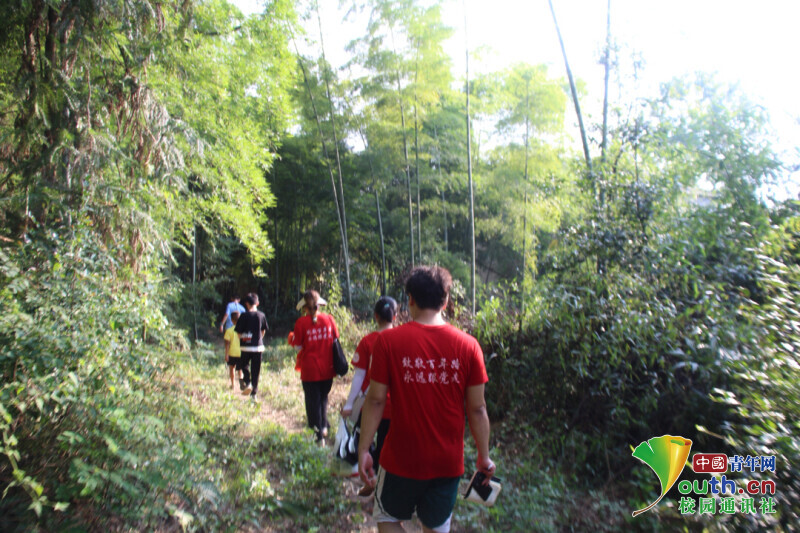 图为新航向·梦之队志愿者们徒步深入大山拜访老党员家。中国青年网通讯员 欧阳健 摄