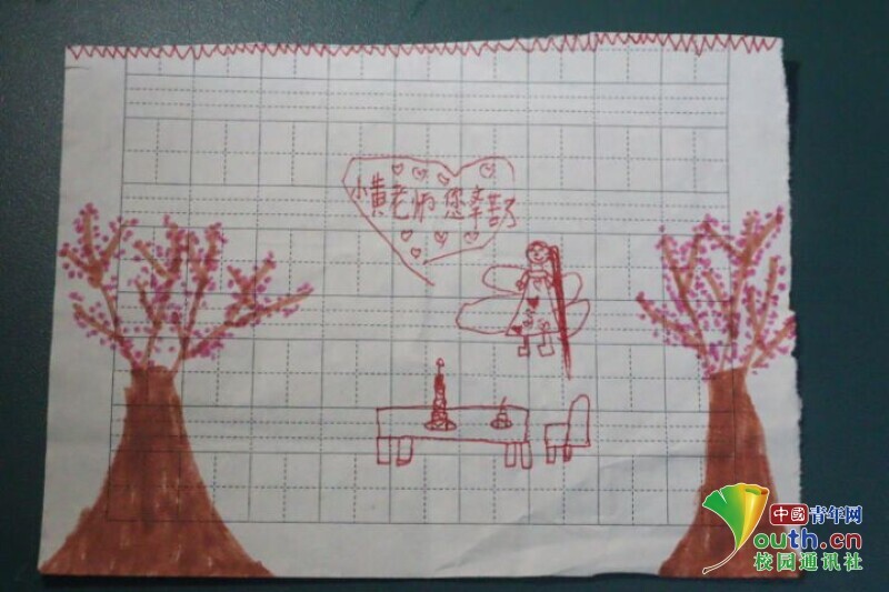 图为班上同学写给班主任的贺卡。中国青年网通讯员 段新利 摄
