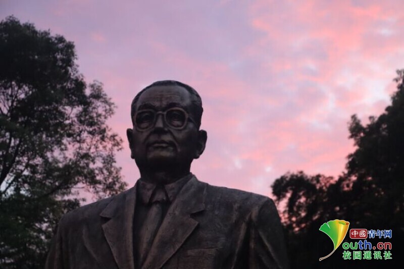 图为矗立在校园里著名华侨教育家张国基先生的雕像。中国青年网通讯员 段新利 摄