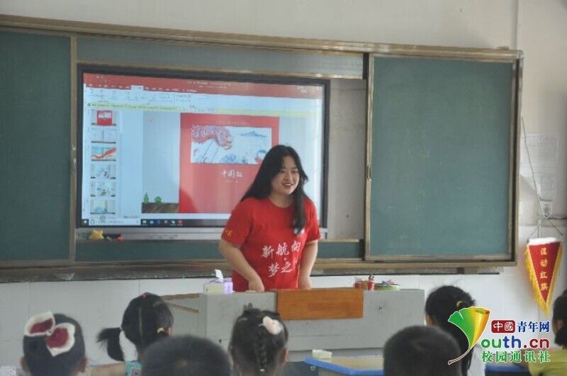 图为老师在向学生们讲述《中国红》这一经典红色故事。中国青年网通讯员 马唯一 摄
