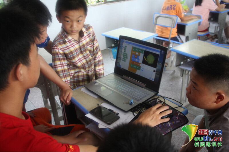 图为少儿编程课后,老师为学生们解答疑惑,深入分析图形化编程的原理。中国青年网通讯员 何星逸 摄