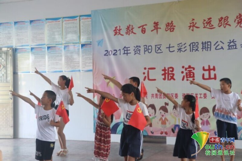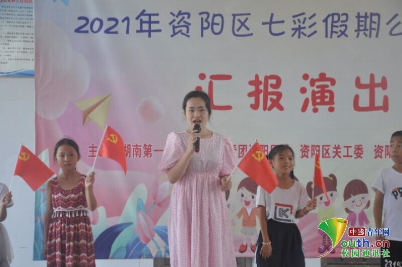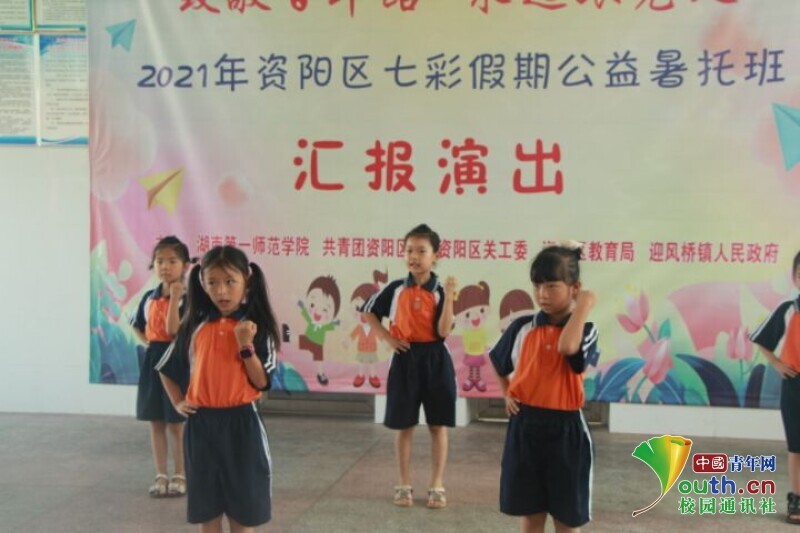 中国青年网益阳8月11日电(通讯员 黄波 张航行)为展示BV伟德官方网站信息科学与工程学院新航向·梦之队赴迎风桥镇乡村振兴实践团到益阳市资阳区迎风桥镇长塘仑小学暑期“三下乡”社会实践成果,志愿者开展以“致敬百年路,永远跟党走”为主题的艺文汇演活动。7月24日,全体学生以及队员做好充分表演准备,在上午九点准时开展文艺汇演活动。队员们用一场精彩纷呈的文艺汇演为此次长达半个月的支教画上了圆满的句号。