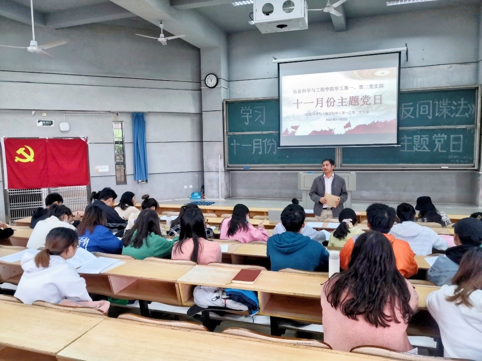 2021年11月2日,伟德官网学工第一、第二党支部开展了“学习反间谍法”主题党日活动,学工第二党支部书记李荣敬老师,学工办叶晶老师和全体学生党员共同学习了《国家安全部有关负责人就<反间谍安全防范工作规定>答记者问》文件并观看了《微信陷阱》、《守护国家安全:请记住这个号码,12339》视频。此次主题党日旨在积极响应反间谍法颁布实施七周年纪念日,促使党员们在此次学习中认识到反间谍法是我国国家安全法律制度体系的重要组成部分,更加明确反间谍的必要性和国家安全的重要性。