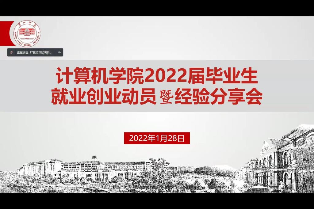 1月28日晚,伟德官网2022届毕业生就业创业动员暨经验分享会以腾讯会议形式举行。招生就业处朱承学处长、殷章馨副处长、学院全体党政领导、全体辅导员、往届优秀校友代表、全体2022届非公费毕业生与会,会议由学院党委副书记陈奕主持。