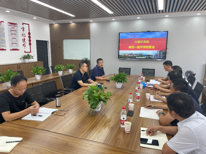 8月27号下午,教务处副处长汤希玮,电子信息学院院长高峰、副院长王建军带队来伟德官网开展课程“两性一度”开学检查工作,院长满君丰、副院长何向阳参加了此次活动。