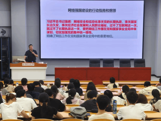 田祖伟从网络安全形势研判、法规解读及舆情风险防控策略三大维度,系统阐述了网络信息安全与舆情防控的核心要义。他以网络病毒的传播路径和变异特征为切入点,深入剖析其现实危害;结合典型案例,详细解读网络安全法规体系,并传授舆情风险的识别与应对方法,特别强调筑牢网络安全防线的紧迫性。此外,他还对入党积极分子提出了网络行为规范的具体要求。