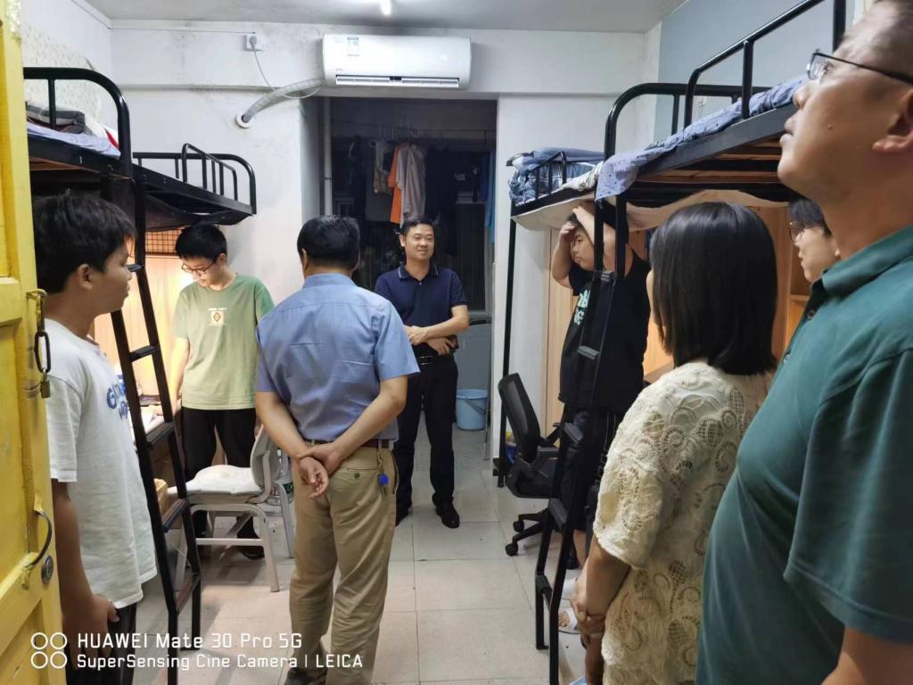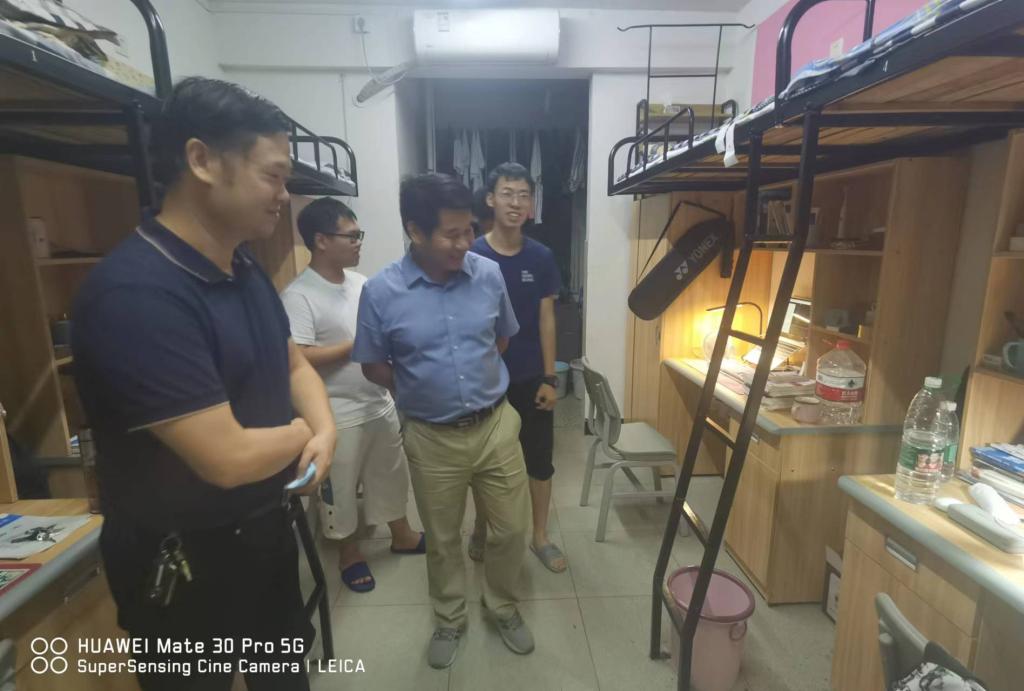 9月21日晚,副校长周发明在BV伟德官方网站党委书记刘立勇、副院长何向阳、院党委副书记陈奕和全体辅导员的陪同下,来到田径场看望军训学生。对军训学生的晚训表现给予了高度评价,慰问了现场因病无法参加晚训的后勤军训见习学生。周发明一行还查看了我院学生寝室,了解同学们的生活和学习情况,重点询问了同学们英语四六级考试情况以及专业课程作业情况。周发明对我院寝室内务卫生及寝室浓厚的学习氛围给予了肯定,勉励同学们要继续保持良好生活习惯,勤奋学习,争做时代新人。