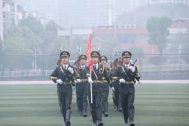 薄明7时整,伴随着《义勇军进行曲》的悄然响起,国旗护卫队的队员们踏着铿锵的步伐迈向升旗台,他们满怀豪情,英姿飒爽。全院师生,沐浴着清晨的第一缕微曦,肃穆站立,眉目庄严;五星红旗,在全体师生的注目礼下,迎风抖擞,猎猎飘逸。
