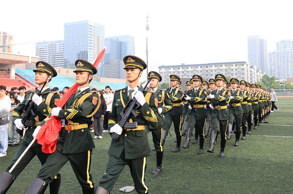 仪式伊始,全体师生肃立,国旗护卫队的队员们迈着铿锵有力的步伐,护送着鲜艳的五星红旗步入升旗台。随着嘹亮的国歌声响起,五星红旗冉冉升起,迎风飘扬。在场的每个人都向国旗行注目礼,深怀对祖国无限的热爱和崇高的敬意。