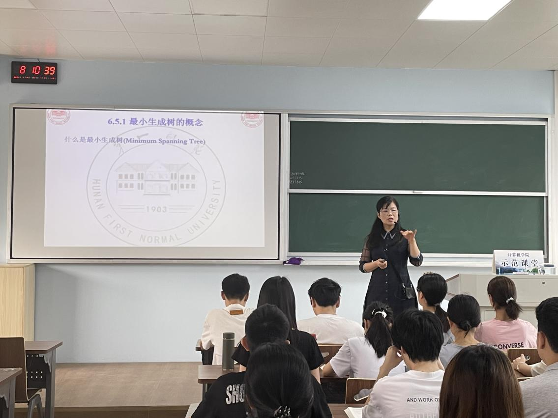 5月15日上午,洪伟在玉衡楼605为23计科4班的同学带来了一堂生动的《数据结构》课,本堂课的主题为图的最小生成树。洪伟结合实际应用,采用界定算法问题、辨析算法思想、定位技术要点三部曲的授课逻辑,帮助学生深入理解知识。她通过一个实例贯穿整堂课,巧妙地设计了课堂的各环节,引导学生用模块化的思想把握算法,同时也关注了具体的代码实现细节,教学效果显著。